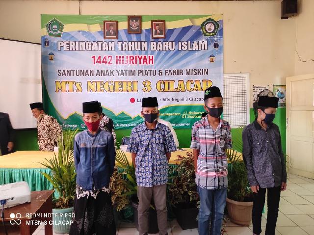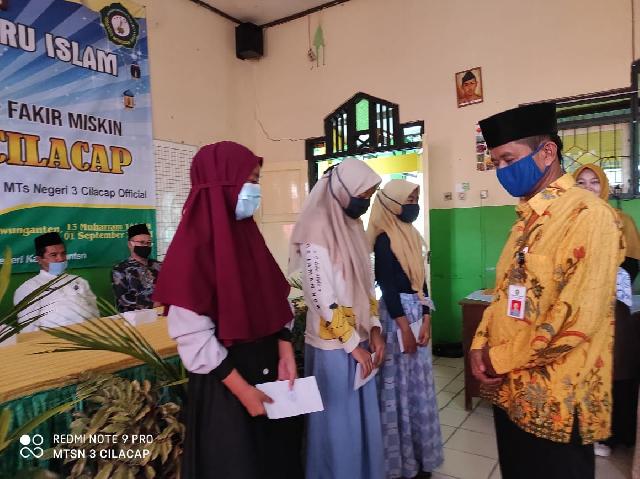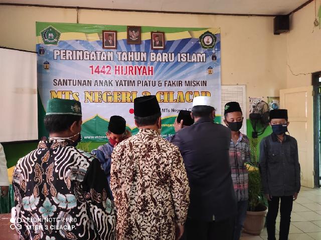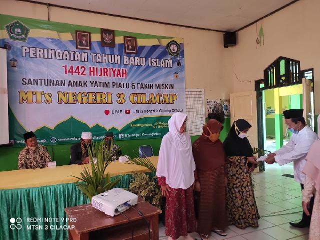 Kepala TU MTsN 3 CIlacap memberikan santunan kepada anak yatim piatu | Kepala MTsN 3 Cilacap memberikan santunan kepada duafa di sekitar lingkungan MTsN 3 Cilacap |